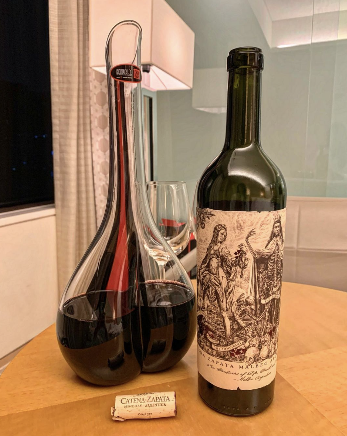 이토록 상징적인 레이블 속에 든 와인은 어떠한 것일까. 까떼나 자파타 말벡 아르젠티노는 세계 최정상급 와인들과 어깨를 나란히 하는 아르헨티나 와인을 목표로 만들어졌다. 출시와 동시에 로버트 파커로부터 98점을 받았으며, 지금은 아르헨티나 와인을 세계 반열에 올려놓은 주역 중 하나라는 평가를 받는다. 와인은 1930년에 조성된 역사적인 포도밭 안젤리카(Algelica)와 해발고도 1,095m에 자리한 포도밭 니카시아(Nicasia)의 포도를 블렌딩해 만들어진다. 최근 빈티지인 2019년 와인은 제임스 서클링 99점을 받았다.